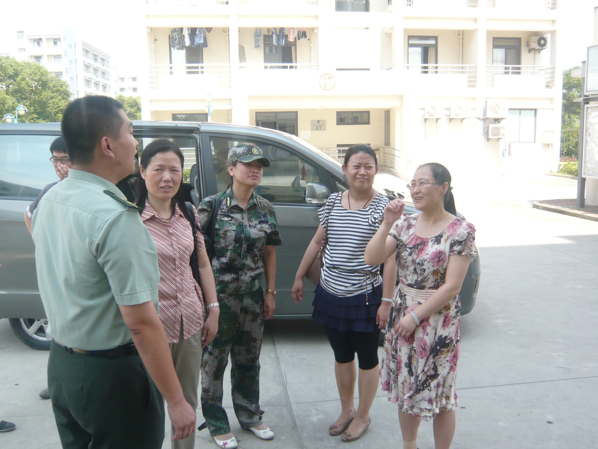 7月4日下午两点,炽日灼地,永利集团官网党总支书记王喆,党总支书记、学工委主任王越来到奉贤前来探望军训官兵和受训学生。