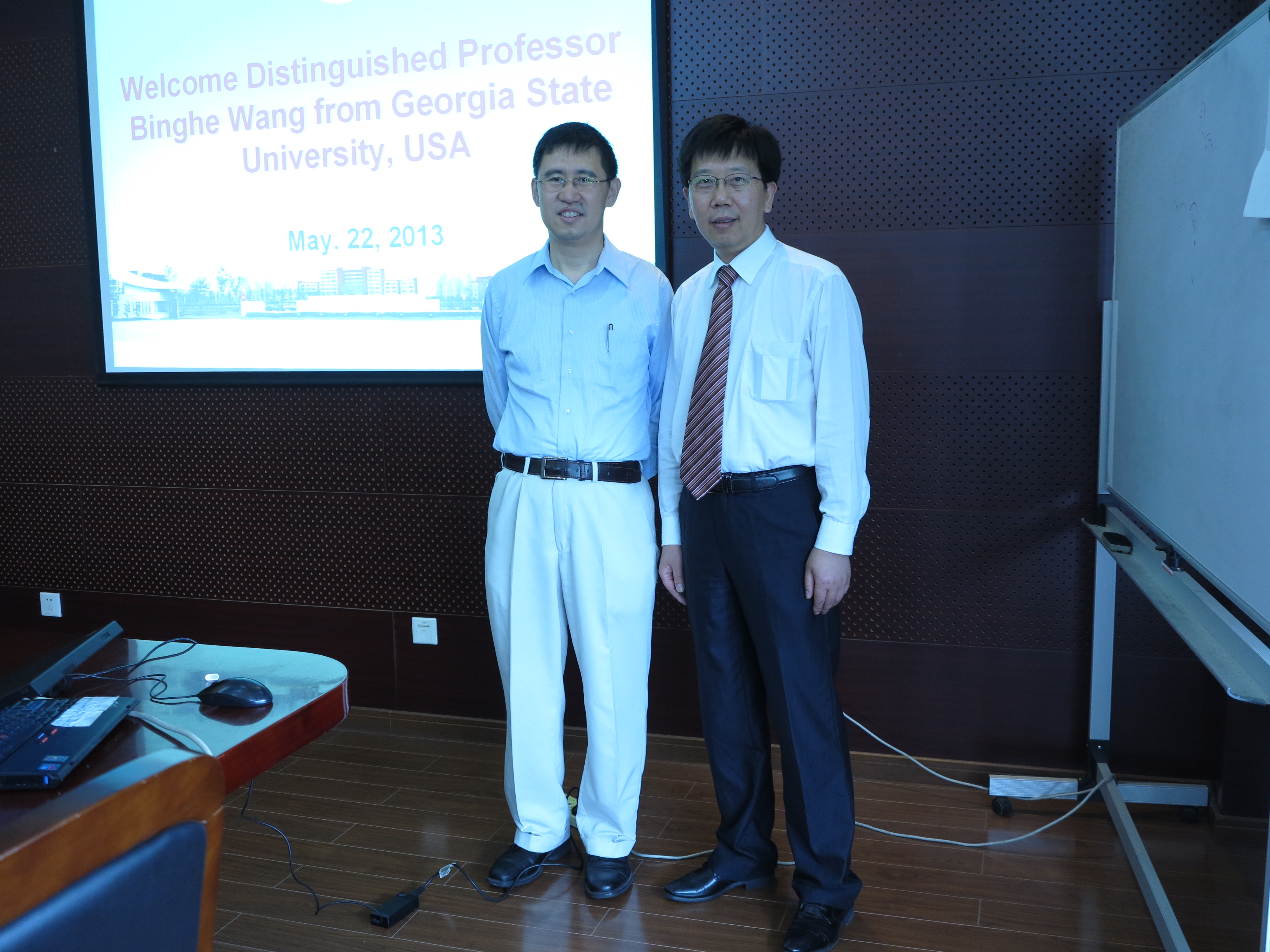 5月22日,美国佐治亚州立大学化学系主任Binghe Wang教授应邀访问永利集团官网,钱旭红校长与Binghe Wang教授就肿瘤细胞的分子识别、荧光和质谱探针进行了深入探讨和交流。随后,Binghe Wang教授以“Looking for the “Sweet Spot” and pharmacological targets for disease”为题, 就糖生物化学前沿领域,肿瘤细胞表面特征多糖标识物的分子识别及荧光和质谱探针的设计原理并应用于肿瘤诊断做了精彩和风趣的学术报告,钱校长和与会的师生纷纷提问与Binghe Wang教授进行现场互动。报告会由永利集团官网常务副院长徐玉芳教授主持。