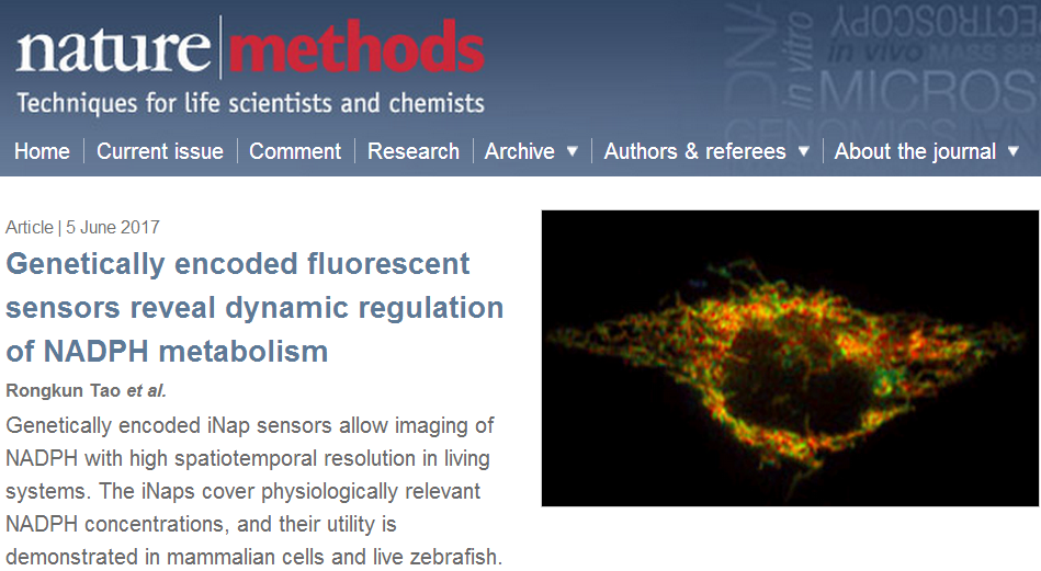 6月5日,国际权威学术期刊Nature Methods上以“研究长文”的形式在线报道了永利集团官网生物反应器工程国家重点实验室、永利集团官网杨弋教授、赵玉政研究员课题组与中国科学技术大学刘海燕教授课题组合作的研究成果:“Genetically encoded fluorescentsensors reveal dynamic regulation of NADPH metabolism”。