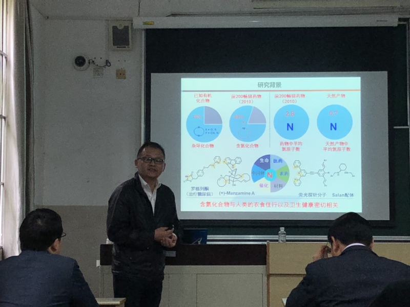 黄汉民的研究工作致力于过渡金属催化的C–N键活化研究,基于过渡金属催化实现了一系列新型含氮分子的高效构建。黄汉民详细介绍了其课题组在C–N键活化及复分解研究领域的工作进展,分享了在实验过程中发现和解决问题的方法。精彩的报告让永利集团官网与化学院的师生们意犹未尽,在报告结束之后大家还就相关的问题进行了热烈的互动。
