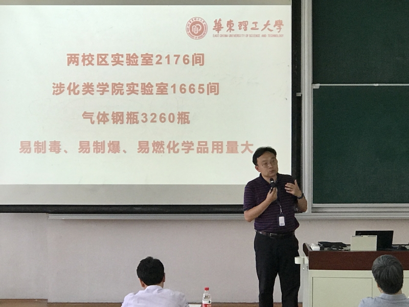 首先,徐宏勇作题为“建立安全文化 唤起安全意识”的讲座,以“一流大学需要一流的EHS管理”为主题,介绍了永利集团官网实验室安全的基本情况,从危害识别、风险评估、减少风险、预防工作四个角度为切入点,结合近几年高校发生的实验室安全事故案例,对实验室常见的钢瓶管理、危险化学药品管理、通风橱的使用、实验室废液的处理、个人安全防护等进行了生动详细讲解。
