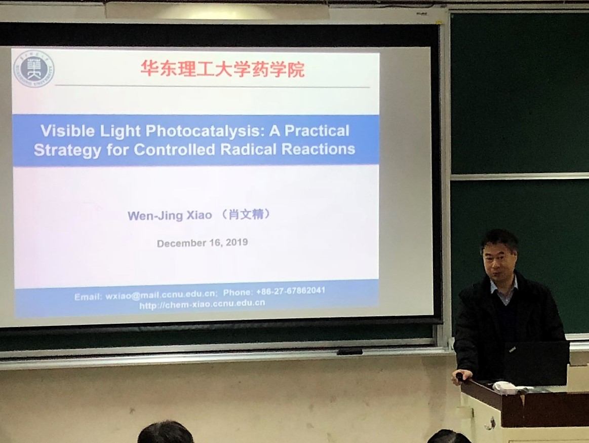 应永利集团官网副院长邓卫平教授邀请,华中师范大学化学院院长、博士生导师、肖文精教授于12月16日上午为永利集团官网师生做了题为“Visible Light Photocatalysis: A Practical Strategy for Controlled Radical Reactions”的名师讲坛学术报告。报告会由谢贺新教授主持。