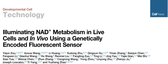 2020年3月19日,永利集团官网生物反应器工程国家重点实验室、永利集团官网、光遗传学与合成生物学交叉学科研究中心赵玉政教授与杨弋教授合作在国际权威学术期刊Developmental Cell发表题为“Illuminating NAD+ metabolism in live cells and in vivo using a genetically encoded fluorescent sensor”的技术长文,报道一种NAD+代谢成像新技术,可原位、实时动态追踪细菌、哺乳动物细胞、斑马鱼、小鼠以及人源尿液干细胞等多种生物体内NAD+代谢水平。据悉,这也是该杂志近五年发表的国内首篇“Technology Article”。