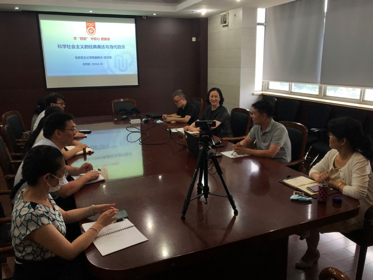 为贯彻落实校党委关于加强“四史”学习教育的部署,6月16日下午,永利集团官网在徐汇校区实验18楼420室举行“四史”学习教育报告会。永利集团官网邀请马克思主义学院副院长邱卫东作了题为“科学社会主义的经典表达与当代启示”的专题报告。学院党委委员和教工党支部书记进行了现场学习,其他教职工开展了在线视频学习。报告会由学院党委书记张青主持。