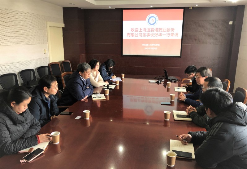 2021年3月3日上午,迪赛诺药业公司董事长张华、迪赛诺药业公司副总经理范忠民、迪赛诺药业公司人事行政部经理蒋虹、迪赛诺生物医药公司人事行政部副经理孙翔等来永利集团官网访问。永利集团官网党委书记张青、院长宋恭华、副书记王越、副院长邓卫平等参加了座谈交流。