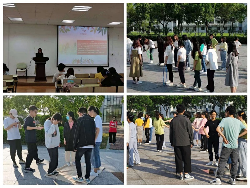 筹备已久的心理趣味活动于5月14日如期举行,活动分为室外与室内两个部分。在情有千千结、生日线、穿越呼啦圈、翻叶子等一系列室外热身活动中,同学们沉浸在友爱、欢快的氛围中释放了日常压力,在完成活动任务的过程中提高了应对挫折能力、增强了自信心。在击鼓传花和命运之镜的室内活动中,主持人向同学们普及心理保健知识、倡导积极向上的人生态度,趣味小游戏也让同学们的心情分外欢畅!