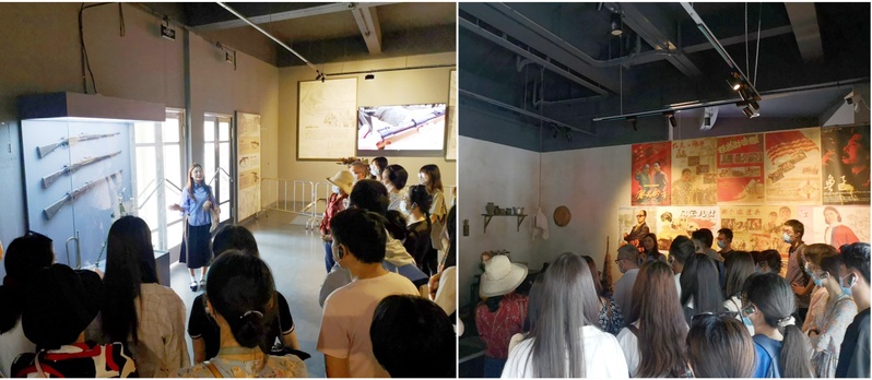 行至南京路帐子公司,高台演讲的革命代表、群情激奋的抗议人群以及手持棍棒的巡捕,瞬间就将时空拉回到“五卅运动”现场。大家随即加入到反帝爱国的队伍中高呼“打倒帝国主义”,完全沉浸在党的重大历史事件中,也对党的初心使命的内涵有了更深的领悟。而后在上海大戏院场景地,观看优质老影视剪辑的短片《红色光影录》,重温1921-1949年的革命记忆,引领大家追寻峥嵘岁月。