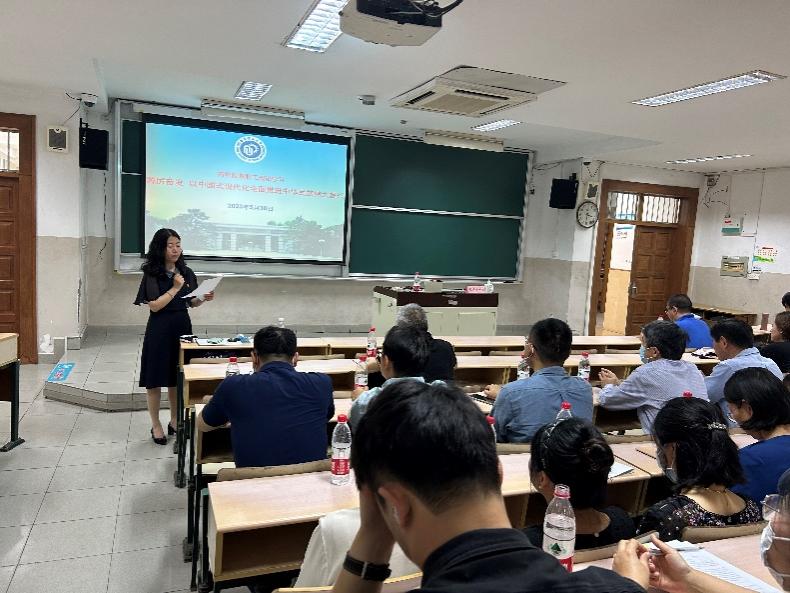 按照永利集团官网党委关于学习贯彻习近平新时代中国特色社会主义思想主题教育的部署安排,5月30日下午,学院党委特邀请马克思主义学院党委副书记卢杨作“踔厉奋发——以中国式现代化全面推进中华民族伟大复兴“的教职工理论学习专题报告会。学院全体教职工进行了现场学习,报告会由学院党委副书记、纪委书记陈莉丽主持。
