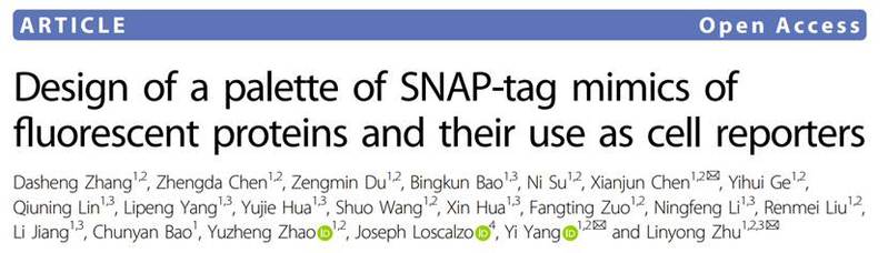 近日,永利集团官网永利集团官网、生物反应器工程国家重点实验室、光遗传学与合成生物学交叉学科研究中心杨弋/朱麟勇/陈显军团队在活细胞蛋白质标记与成像研究中取得重要进展,在《Cell Discovery》期刊发表题为“Design of a palette of SNAP-tag mimics of fluorescent proteins and their use as cell reporters”的研究文章。