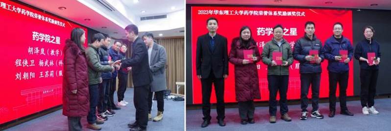 倪炜、王越、邵旭升和张敏为入职华理30年、20年和10年的教师颁发了纪念牌,感谢他们长期以来为学校和学院发展做出的积极贡献。