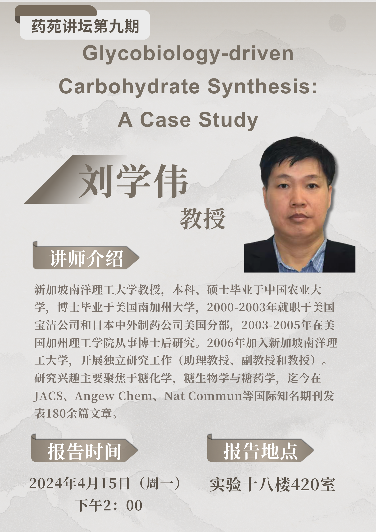 【药苑讲坛】Glycobiology-driven Carbohydrate Synthesis:A Case Study