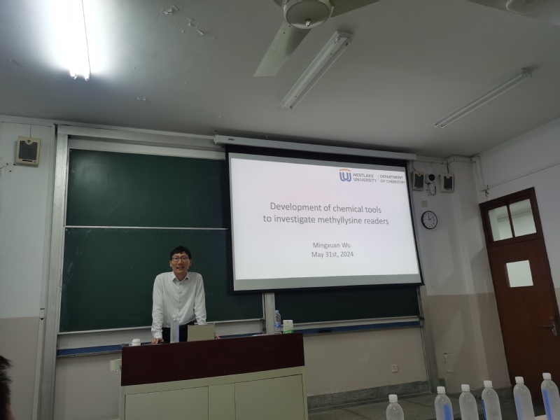 5月31日下午,西湖大学吴明轩研究员应邀为永利集团官网师生作题为“开发化学工具探索赖氨酸甲基化阅读器蛋白”的学术报告,报告会由张永强副教授主持。