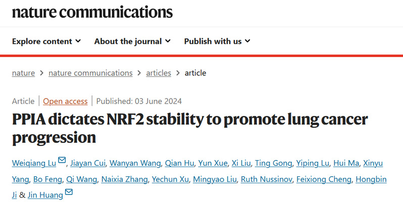 近日,永利集团官网永利集团官网黄瑾课题组在国际权威学术期刊Nature Communications发表题为“PPIA dictates NRF2 stability to promote lung cancer progression”的研究论文,报道了PPIA是维持NRF2蛋白稳定性的关键伴侣蛋白,破坏PPIA/NRF2互作可导致NRF2蛋白水平下调,证明了PPIA/NRF2互作具有明确的可靶向性,是潜在的抗肺癌药物新靶标。