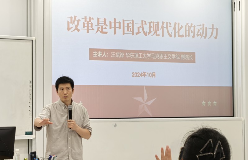 10月15日下午,永利集团官网召开深入学习贯彻党的二十届三中全会精神专题学习会,邀请到马克思主义学院副院长汪斌锋副教授作“改革是中国式现代化的动力”专题报告。学院党政班子、全体教职工以及学生支部书记进行了现场学习,报告由学院党委副书记、纪委书记陈莉丽主持。