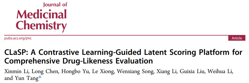 近日,永利集团官网永利集团官网唐赟教授团队在Journal of Medicinal Chemistry上发表了题为“CLaSP: A Contrastive Learning-Guided Latent Scoring Platform for Comprehensive Drug-Likeness Evaluation”的研究论文。该研究报道一个全新的成药性预测模型,通过整合ADMET性质、理化性质以及可合成性,为候选药物分子带来更综合、更具解释性的成药性评分。
