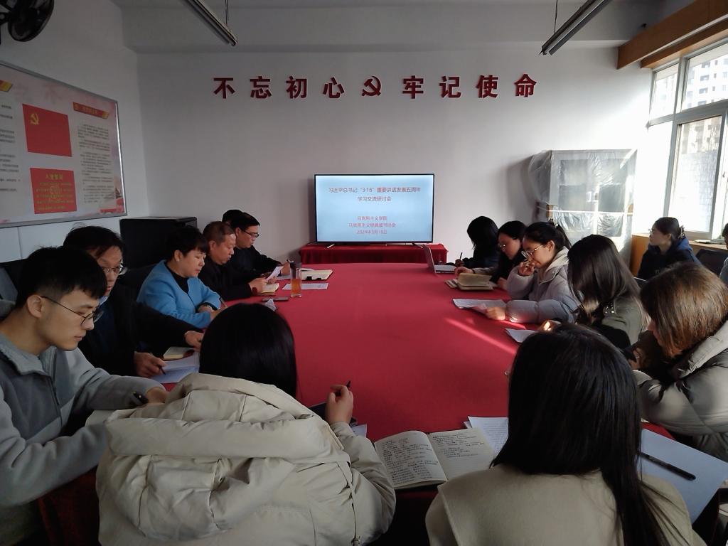 2024年3月18日,正值习近平总书记“3·18”重要讲话发表五周年之际,今年会官网召开学习交流研讨会,重温了习近平总书记在学校思想政治理论课教师座谈会上的重要讲话精神,畅谈了五年来思想政治理论课改革创新取得的成果。学院领导班子成员及青年教师代表参加了研讨会。