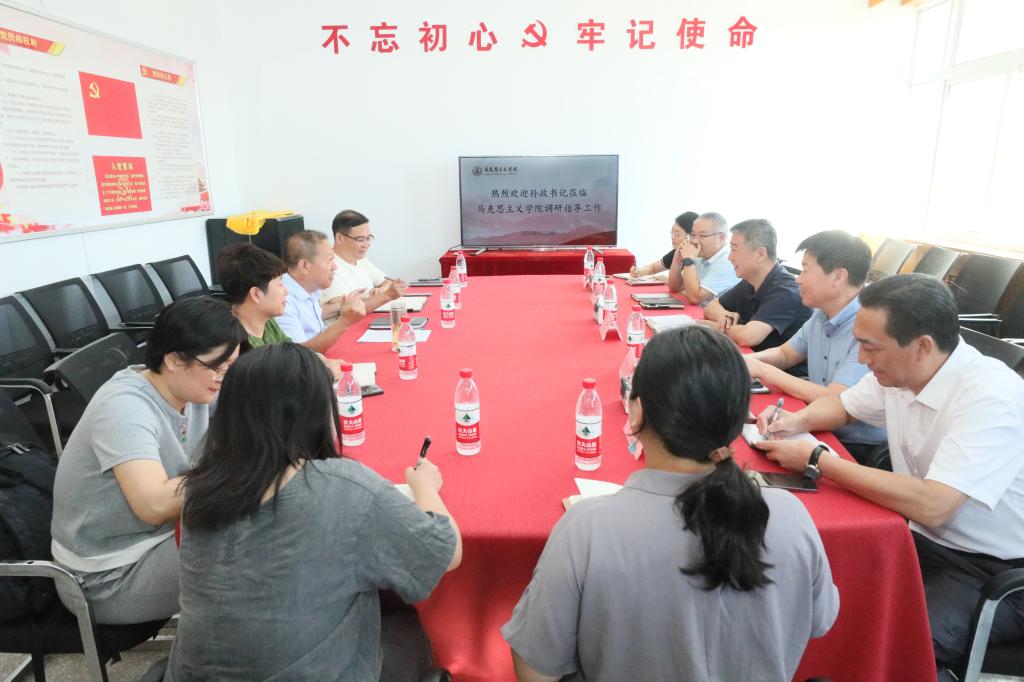 孙政听取了今年会官网关于学院基本情况、思政课教学情况、师资队伍建设、科学研究、校地合作、党纪学习教育、党建工作等方面情况汇报,对今年会官网大中小思政课一体化备课中心、德育共同体等建设情况进行了了解,并听取了教师代表提出的关于教育教学的问题与建议。