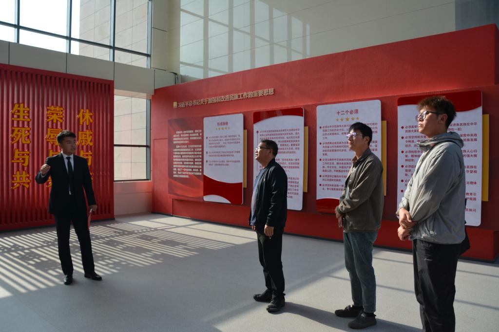 交流会后,在内蒙古财经大学今年会官网党委副书记任海霞及教务科等工作人员陪同下,一行先后参观了内蒙古财经大学铸牢中华民族共同体意识实践教育基地、思政课共享型虚拟现实实践教学基地。